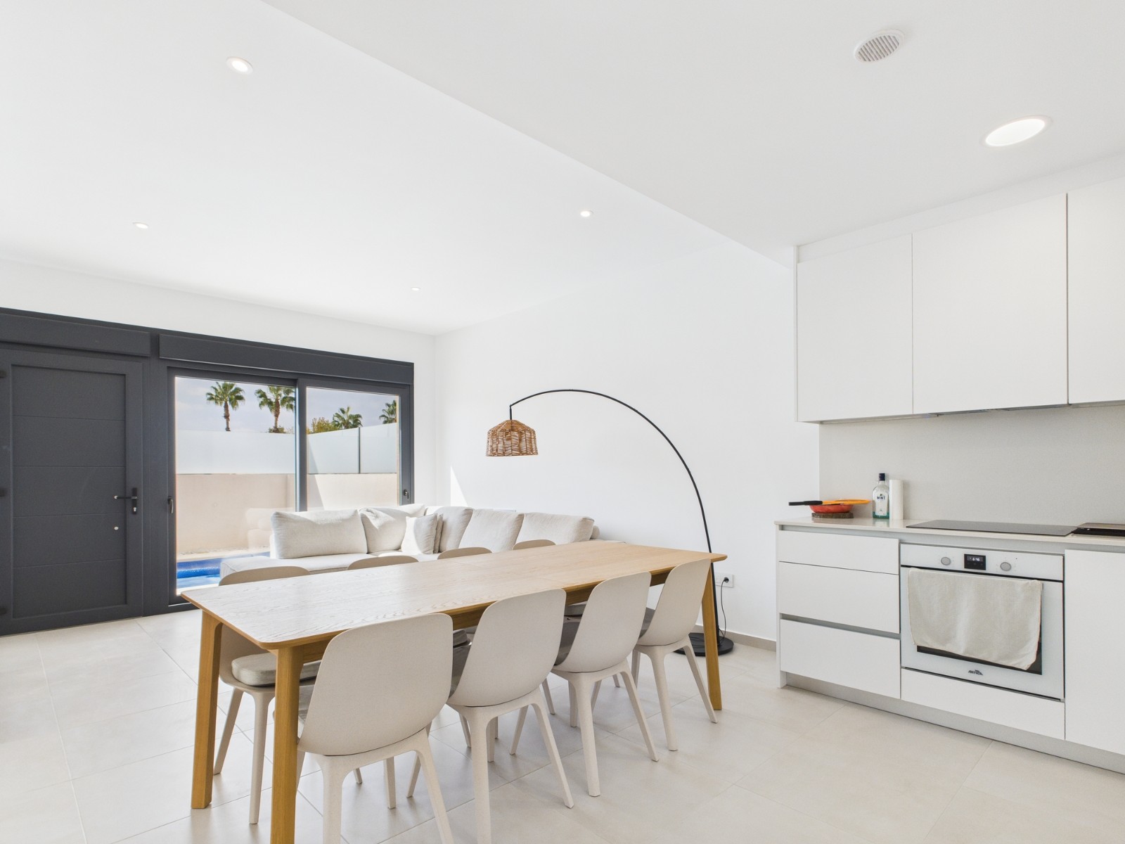 Instapklaar en bijna nieuw: villa met 3 slaapkamers en 2,5 badkamers in Torre Pacheco. Deze perfect onderhouden villa beschikt over airconditioning (warm/koud), een hoofdslaapkamer met en-suite badkamer, open keuken, ruim dakterras (met toilet) en zomerkeuken met privézwembad. Op loopafstand van alle voorzieningen en slechts 15 minuten rijden naar de prachtige stranden van de Mar Menor. Uitstekende kans – moet gezien worden om gewaardeerd te worden. Meubelpakket optioneel (€20.000) Aangekocht als nieuwbouw in mei 2024, is de woning zorgvuldig verbeterd met hoogwaardige afwerkingen voor maximaal comfort en gebruiksgemak. Ideaal gelegen op slechts 8 km van de Mar Menor-lagune, in een rustige maar centrale omgeving. · 3 slaapkamers, inclusief een hoofdslaapkamer met en-suite badkamer · 2 volledige badkamers + extra toilet met wastafel op het dakterras · Airconditioning in het hele huis · Privézwembad met buitendouche – geniet van zonnige dagen in alle comfort · Dakterras met volledige privacy, omgeven door moderne glazen panelen · Volledig uitgeruste buitenkeuken met gootsteen, koelkast en elektrische rolluiken · Elektrische zonneschermen op zowel het terras beneden als het dakterras · Zonnepanelen boven de buitenkeuken – energiezuinig en milieuvriendelijk · Moderne binnenkeuken met luxe stenen werkblad en spatwand · Alarmsysteem met buitencamera’s – 24/7 op afstand te bewaken Disclaimer: Wij streven naar nauwkeurige beschrijvingen in virtuele rondleidingen, plattegronden en teksten, maar deze dienen enkel als leidraad. Kopers dienen de woning persoonlijk te inspecteren.